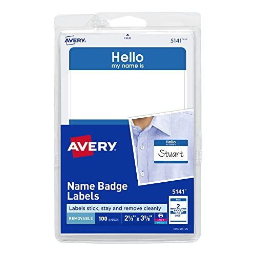 Details: Ensure everyone knows your name, and you know theirs, at your next meeting, reunion, get-together or event with the original Avery “Hello My Name Is” adhesive name tags. These 2-1/3” x 3-3/8” name tags for clothes feature removable self-adhesive that allows labels to stick securely to most fabrics without curling, lifting or falling off, but is not recommended for use on delicate materials like corduroy, plastic, leather, silk, suede, velvet or vinyl. Add that personal touch to each name badge by hand or print out the 4″ x 6″ sheets on your laser or inkjet printer. You can also quickly and easily create professional looking custom name tags using the free templates and designs on the Avery website. These personalized name tags are fantastic for corporate events, group meet-ups, holiday work parties, class reunions, bachelorette parties, bridal showers and more. Great for teachers, these versatile name badges are perfect to use as student name tags for classrooms, desk name tags, and name badge labels for parent-teacher conferences. Item comes with 100 blank name tags with the “Hello My Name Is” design and blue border.