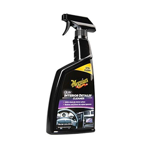 Details: Use Meguiar’s Quik Interior Detailer Cleaner to quickly and easily clean your car’s interior surfaces, including plastics, vinyl, leather, rubber, metal and even LCD and navigation screens. The gentle, high-lubricity formula quickly cleans, lifting dust, dirt, grime and spills while restoring the original appearance of all interior surfaces. Sun-blocking agents in this interior protectant guard against aging, fading, cracking and drying, while an improved deeper cleaning formula leaves a dark, rich shine without a greasy appearance or feel. Great for fast touch-ups, this interior car cleaner comes in a convenient spray bottle for easy application.